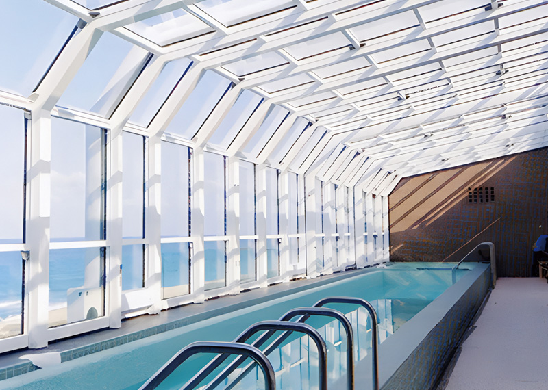 OpenAire®最显著的特征为:多叠全铝合金结构,可以选择全固态无机电致变色玻璃或电动内置卷膜中空玻璃,融合开闭和遮阳的先进的触摸式智能面板,WiFi手机和智能音箱控制;公建项目可以配置全天候光和气候控制器,实时调节室内光照强度以及屋顶开合状态。